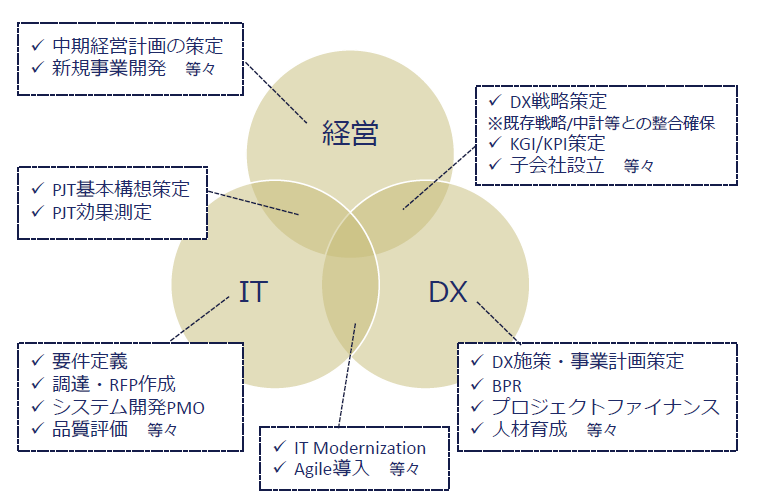 - 目指す姿へ持続的に変革していくため、経験を整理し、新たなアイディアと構想の導出を支援